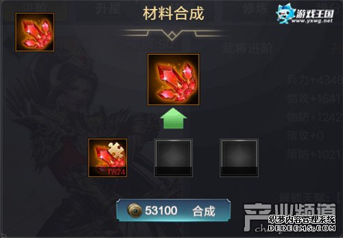然后是进阶的方法。武将进阶的方法很简单,将对应的宝玉镶嵌到武将身上后,再点击“进阶”按钮即可。宝玉是用于武将进阶的一种特殊道具。汉室雄风中共有五种不同类型的宝玉,分别是物攻宝玉、物防宝玉、策攻宝玉、策防宝玉和兵力宝玉。这些宝玉可通过副本掉落、商城购买等途径获取,其中副本是主要的获取途径。