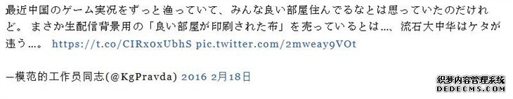 有日本网民(@ KgPravda )最近留意中国的网上实况,他发现那些女生的房间都又大又漂亮,还以为中国人都是住这种房间的。 直到他上淘宝后才发现,原来是因为网站有卖所谓的“实况(主播)用背景布”,而且在中国