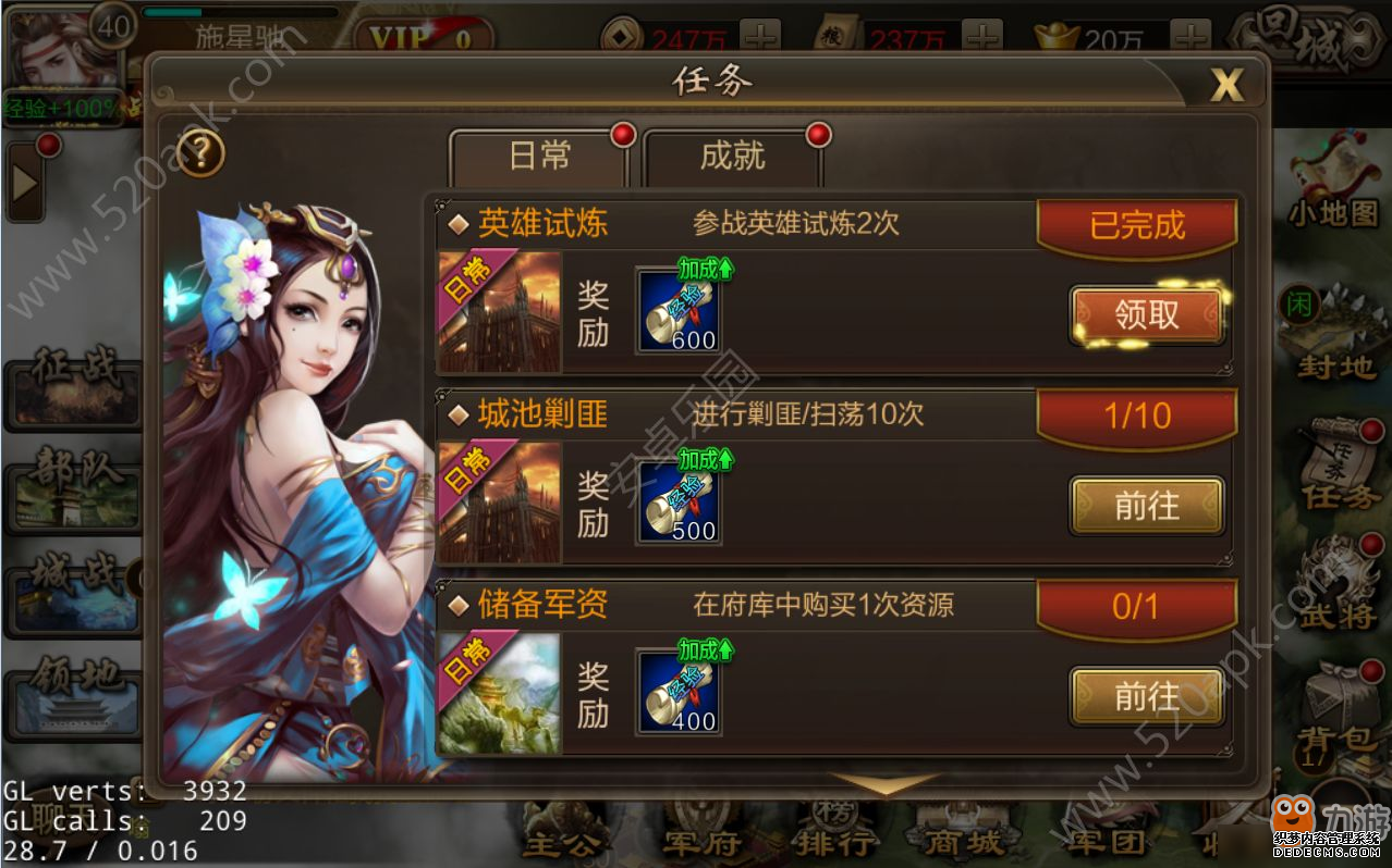 通关城池关卡,不仅可获得丰厚的资源奖励,还能获得大量经验值,而且城池关卡的难度普遍较低,只要到达了开启等级,基本就能很容易通关。