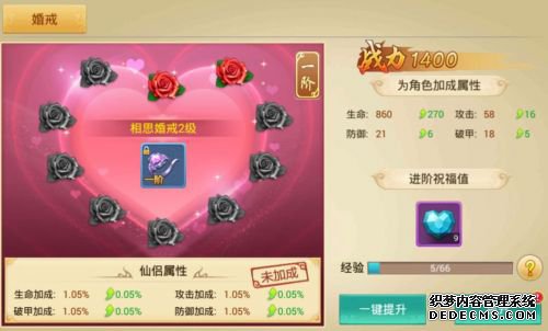 除此之外,《百战天下》仙缘系统还拥有婚戒、仙娃、副本、宝匣四大功能。在玩家成功结缘后便可得到专属婚戒,瞬间提升仙友的全方位属性。仙缘副本则是伴侣或异性组队的双人副本,玩家成功通关副本后会获得大量经验值、祝福石与鲜花奖励,鲜花可以增加伴侣间的亲密度,提升婚戒的等级,将在游戏后期给予玩家巨大的帮助!