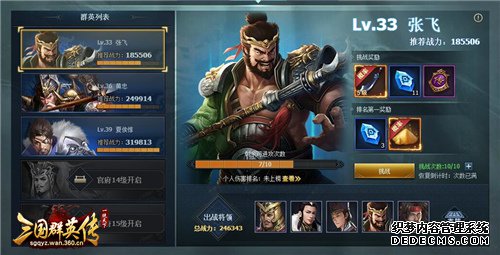 三国中实力辈出的武将不在少数,,即便是稍有名气的武将在对抗他们时都会败下阵来,更何况兵力不足的主公非要当枪匹马战枭雄,为此,百战群英专门设定了全民挑战的玩法,所有主公可同时上阵对多个等级的将领发起挑战,每个将领被挑战10次后即被击败,一段时间后将重生,再次迎接主公的挑战。