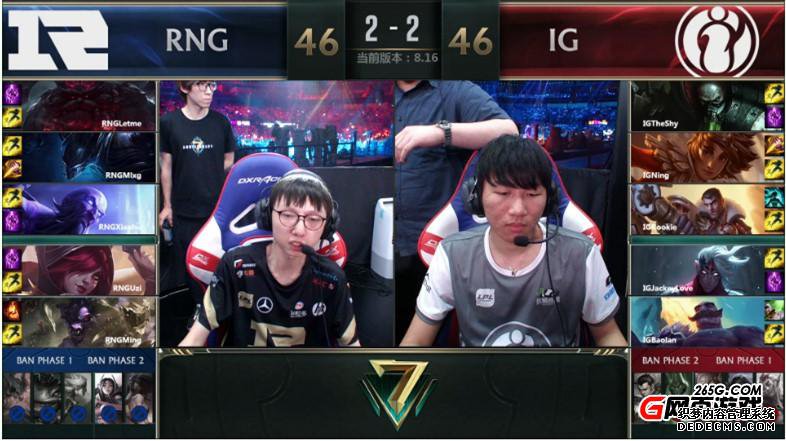 中期RNG团灭对方后,从阵容到经济,RNG都是全面领先的。但是比赛来到26分钟,IG灵性选择了偷大龙,虽然RNG前来接团,但是维鲁斯依旧拿到大龙,随后IG强势推进上路二塔,瑞兹被开但有金身,牛头情急之下被IG击杀,RNG无奈上路水晶被破。