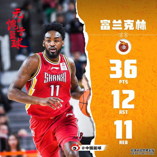 36分11篮板12助攻4抢断2盖帽,山西队外援富兰克林再次用自己全能的表现,带领球队击退了来势汹汹的对手,也征服了主场的球迷。要知道,山西队赛后的数据榜单全都被富兰克林一人刷屏了:得分、篮板、助攻、抢断、盖帽,这五项基本数据他都是全队第一!
